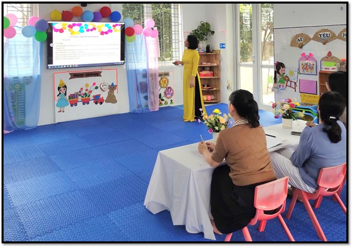 Các tiết dạy của giáo viên, thể hiện được sự đầu tư trong bài soạn, chuẩn bị đồ dùng, tác phong sư phạm, biết sáng tạo và vận dụng linh hoạt các phương pháp dạy học theo quan điểm “Giáo dục lấy trẻ làm trung tâm ”.