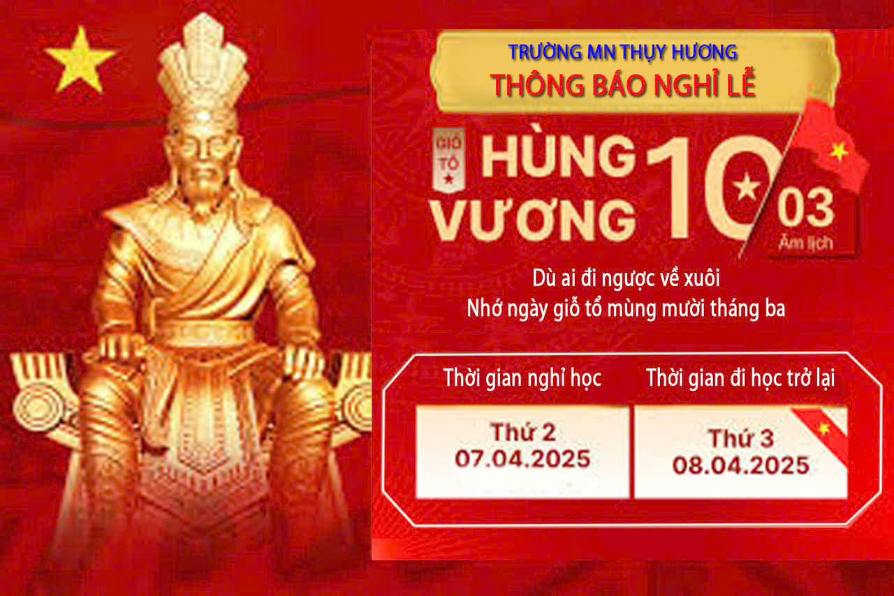 • Trường Mầm non Thụy Hương thông báo lịch nghỉ lễ Giỗ Tổ Hùng Vương
