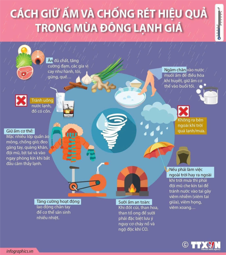 Theo dõi sát tình hình thời tiết, điều chỉnh thời gian sinh hoạt hợp lý; hạn chế cho trẻ ra ngoài khi trời rét đậm, rét hại.