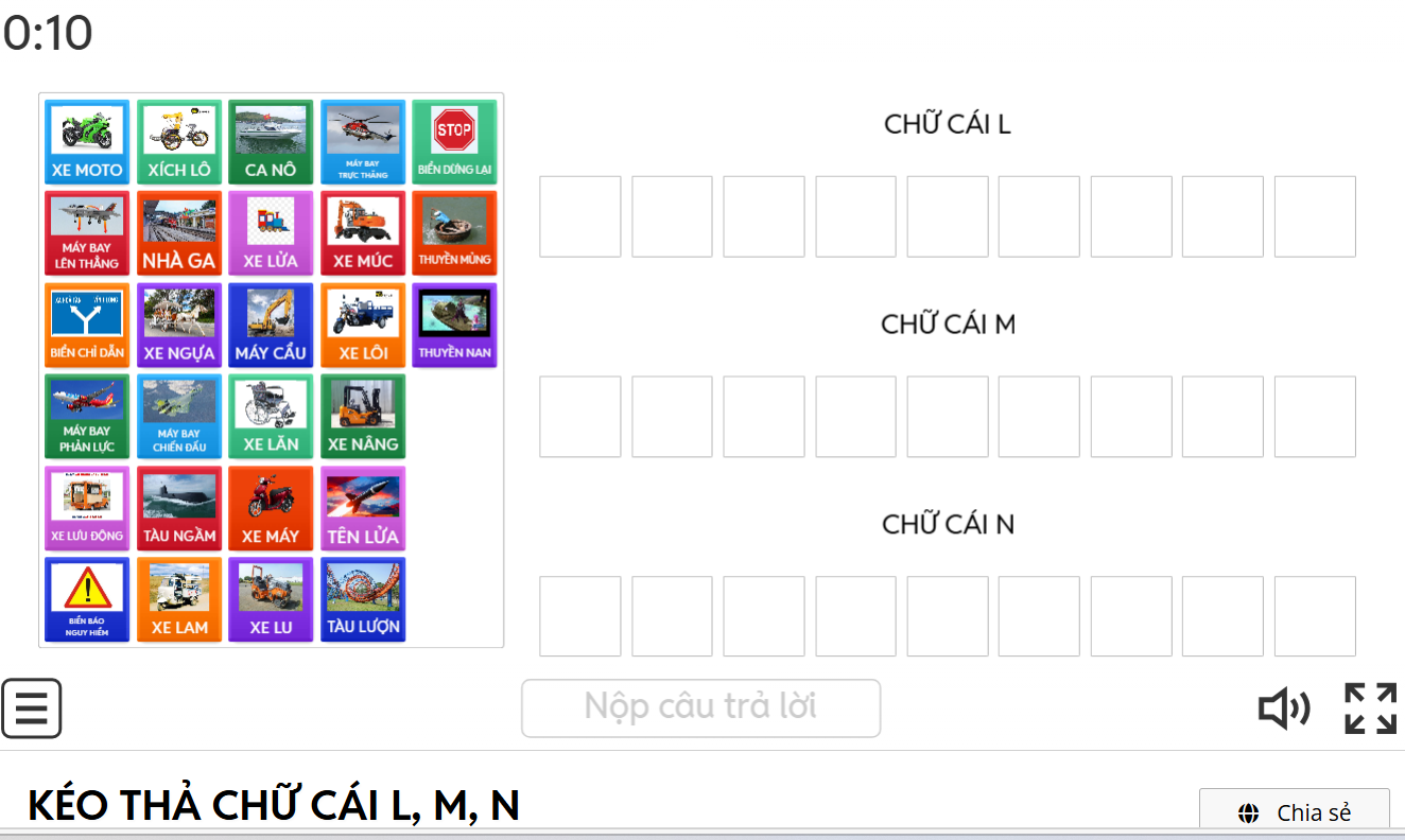 Trò chơi: Kéo thả chữ cái L, M, N- Chủ đề: PTGT- Lớp 5TA2- Thiết kế trên WordWall